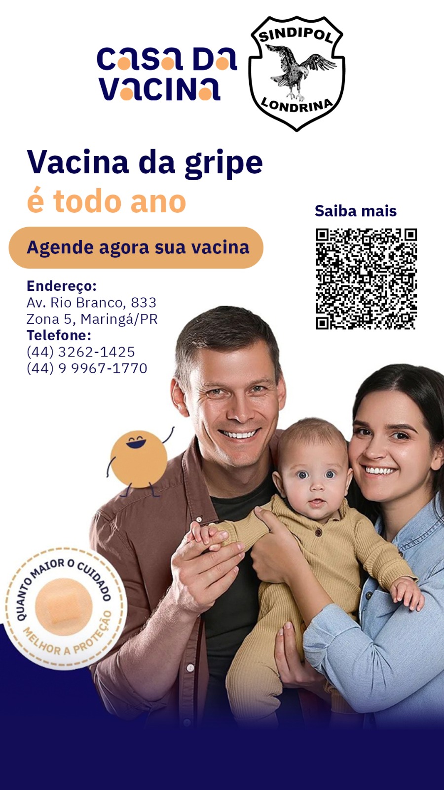 Buscando viabilizar um atendimento com qualidade aos filiados, o SINDIPOL, buscou convênio com a CASA DA VACINA, em Maringá, maiores informações, através de telefone ou